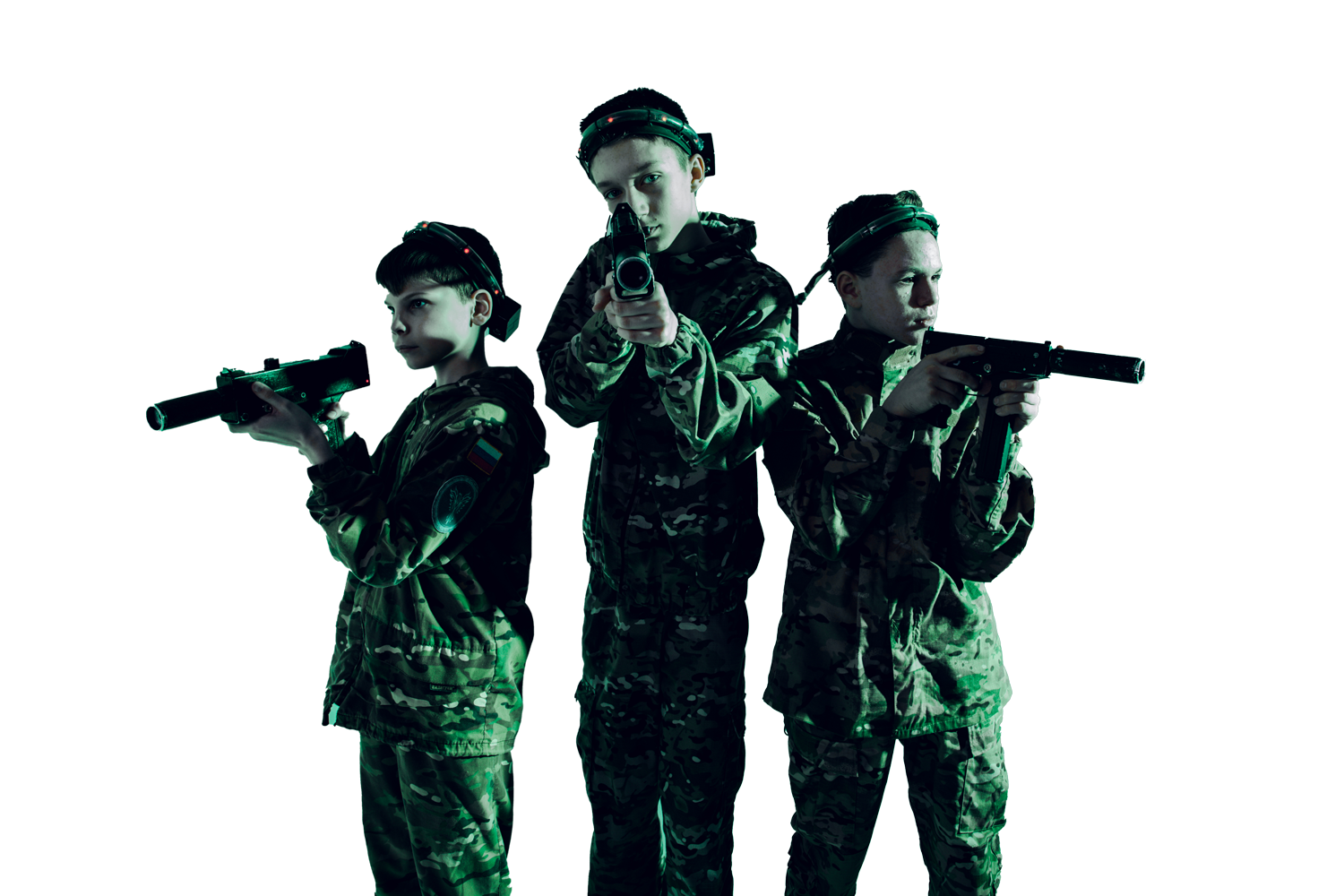 Все как в компьютерной игре и вы в главной роли! Окунись в атмосферу военных действий в реальности. Тагеры для лазертага - полная копия боевого оружия, только легче. Веди свою команду в победе!